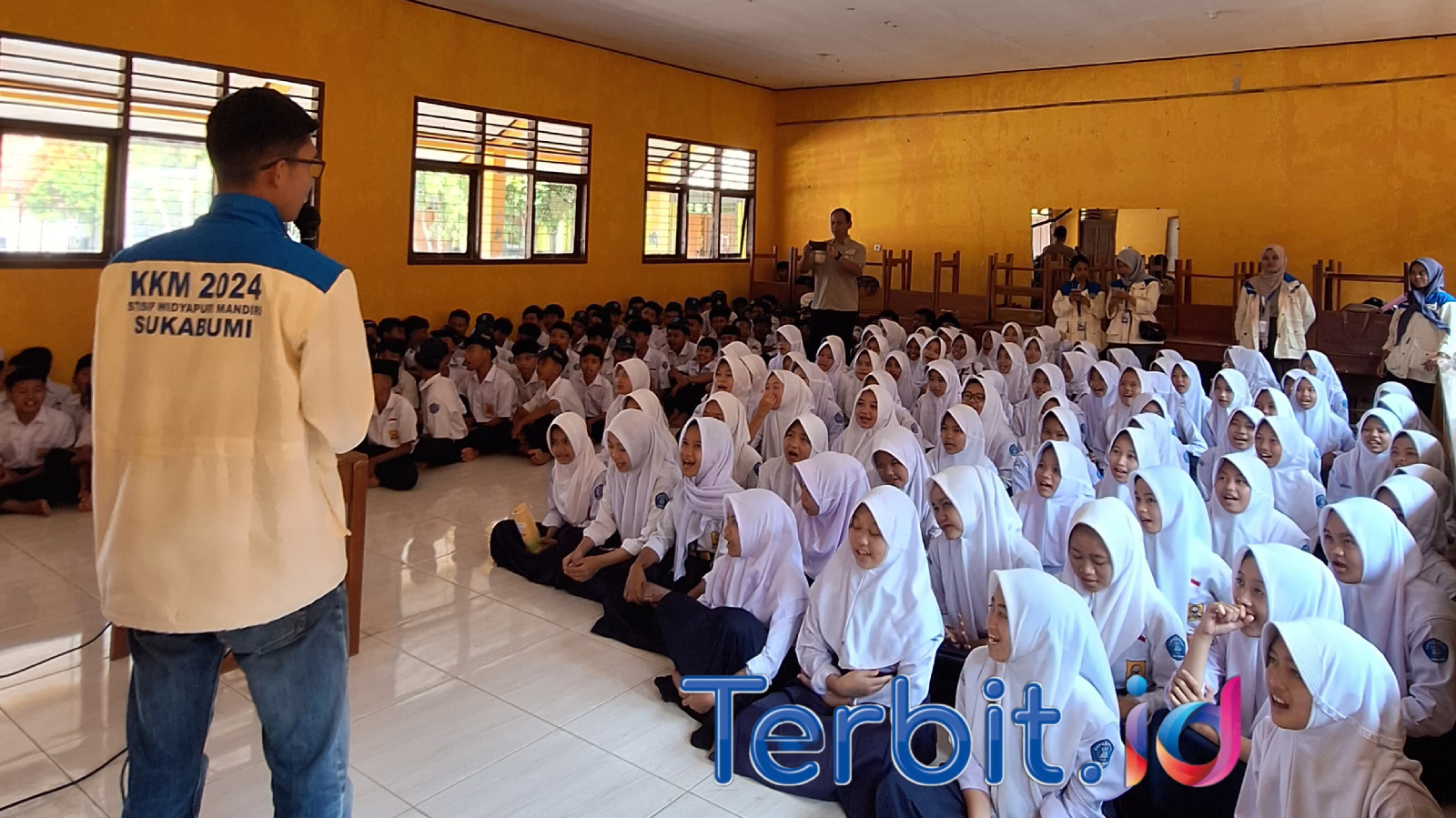 TERBIT.ID, Sukabumi - Mahasiswa yang sedang melakukan Kuliah Kerja Mahasiswa (KKM) dari Sekolah Tinggi Ilmu Sosial dan Ilmu Politik (STISIP) Widyapuri Mandiri Sukabumi melakukan sosialisasi bahaya narkoba kepada pelajar di SMPN 4 Surade, Jalan Munjul, Desa Sirnasari, Kecamatan Surade, Kabupaten Sukabumi.