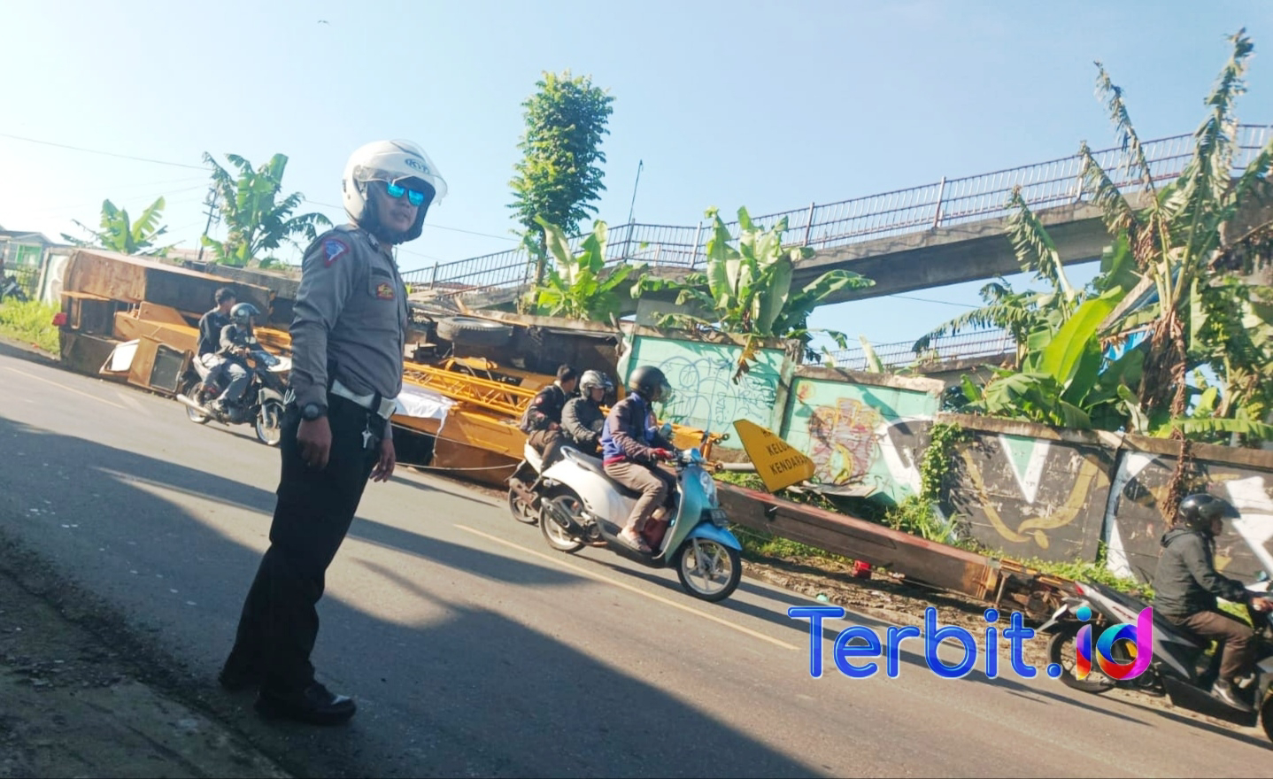TERBIT.ID, Sukabumi - Kecelakaan tunggal menimpa satu unit kendaraan berat jenis mobile crane milik PT TAMA Crane Nusantara di Jalan Raya Siliwangi, Kampung Bangkongreang RT 02/04, Desa Benda, Kecamatan Cicurug, Kabupaten Sukabumi, mengalami rem blong dan masuk ke parit demi menghindari korban jiwa, Rabu (14/5/2025) sekitar pukul 05.00 WIB.